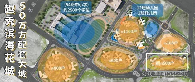 自建学校:项目自身配建 2 班托儿所、12 班公立幼儿园、54 班公立广外附中小学(小学 36 班、初中 18 班),实现家门口 12 年教育。