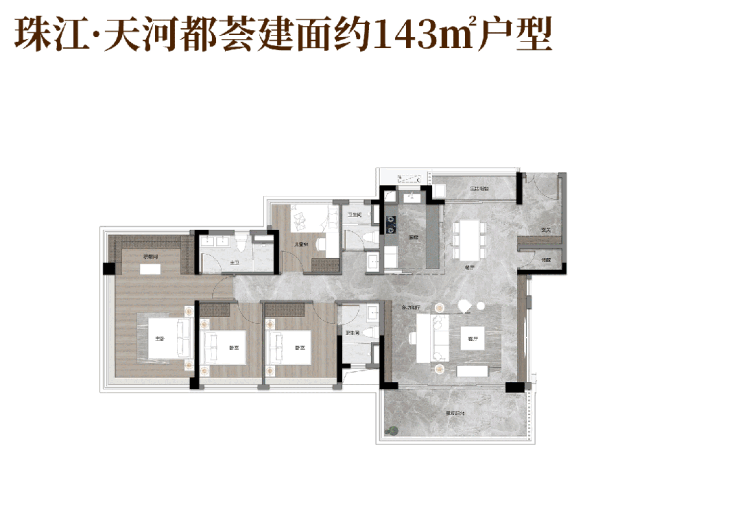 作为新规产品,这个建面约143㎡户型的使用体验,完全可以对标传统170㎡的户型,同样的居住体验,总价却省下一大截,这才是真正的质价比。