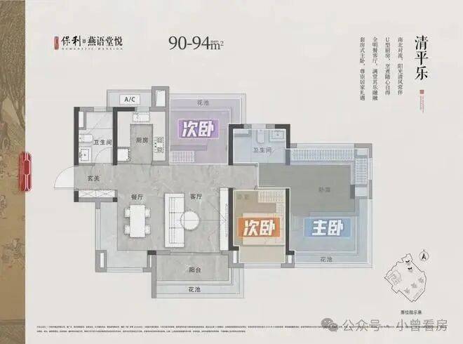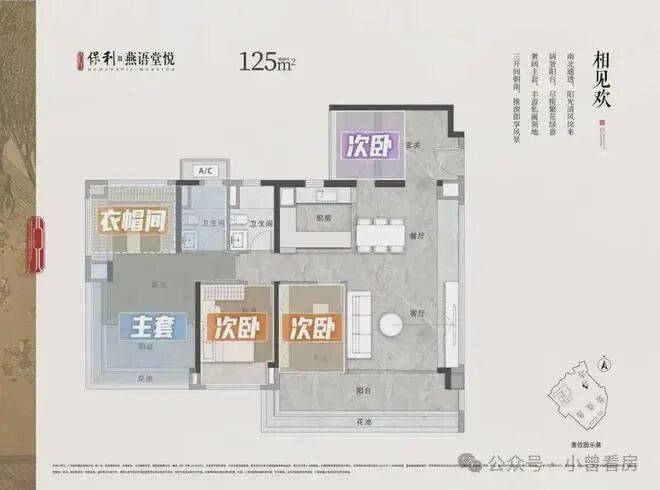项目推出90-125㎡的三至四房户型,合理布局,兼顾采光与通风,适应不同家庭需求:
