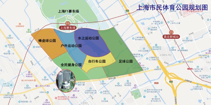 北面一路之隔,规划建设中的上海市民体育公园,占地2.8平方公里,由6个板块组成