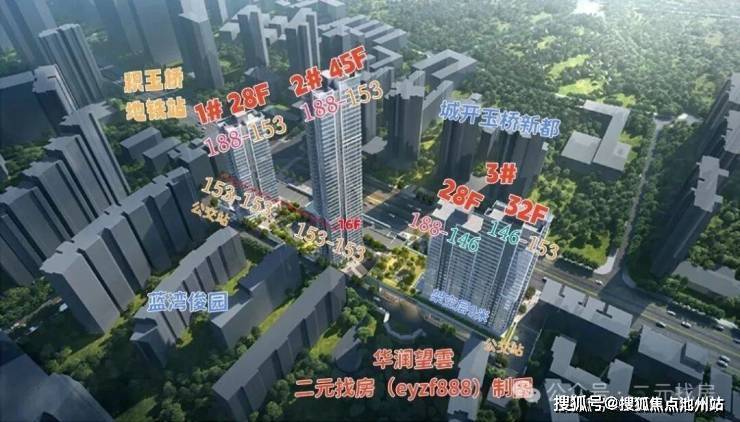 项目一共3栋楼,1号楼28F,2号楼45F,3号楼两个单元,一个28F,一个32F。项目户型为146/153/188㎡。