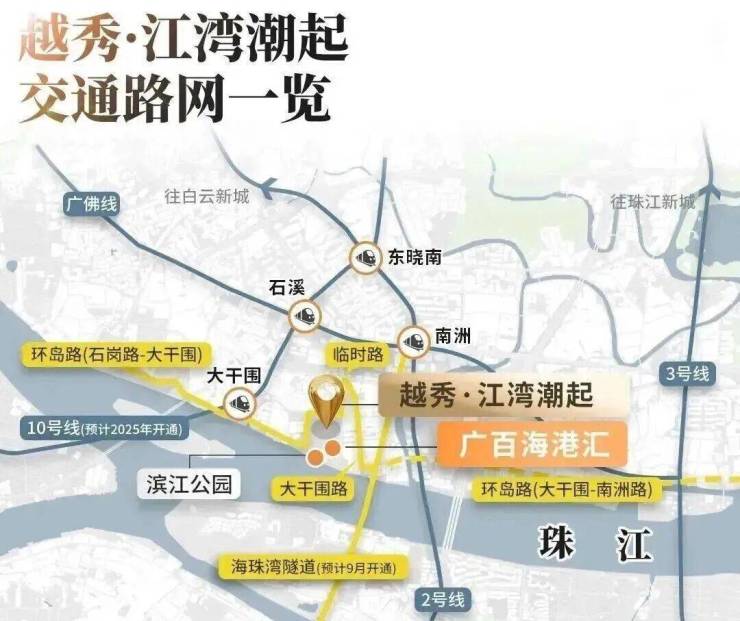 已开通附近的海珠湾隧道,到广州南站通勤约15分钟。