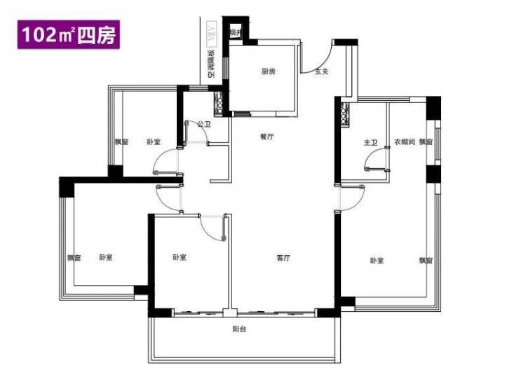 102㎡为四房两厅两卫,南方向可观赏花园美景,高层还能远眺部分河涌风光。但需留意的是,房屋内部存在部分门对门的设计情况。