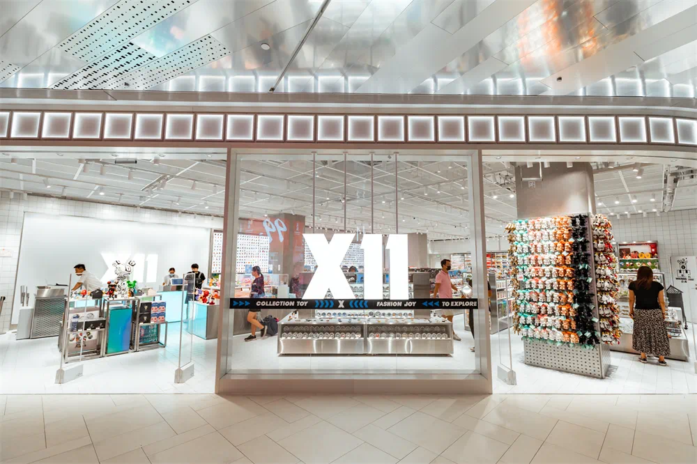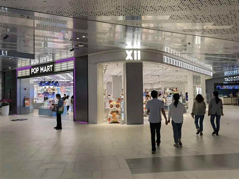POP MART外立面“邪魅”的手办贴画正表明了商场年轻向的定位。而与POP MART紧邻的就是同品类KK集团旗下的X11。
