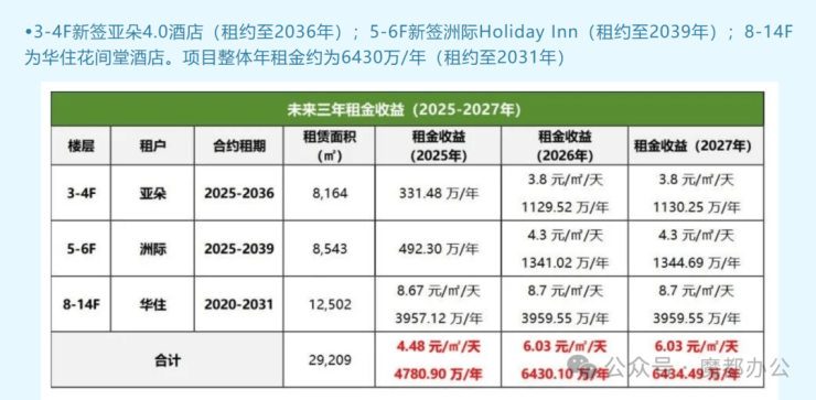 租金回报:6430万/年,每三年递增