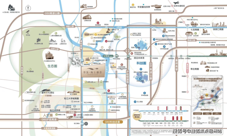 合心规划 产城样板: 【“科创+人文+生态”城市单元示范】华发海上都荟首入松江,携崭新“优+产品体系5.0”,为洞泾、乃至为松江带来目前区域内综合高品质作品。结合上海生态环境保护“十四五“规划,站位国际领先的可持续性项目规划,华发海上都荟结合自身的独特聚合优势,在传统TOD规划之上,不可复制的土地生态资源,向东链接G60科创走廊“以镇命名为区块”洞泾人工智能产业基地;向南直达亚洲大学城之一——松江大学城;北侧紧连上海陆面自然山林资源——佘山国家旅游度假区。板块将区域打造成为“科创+文教+生态”交汇的核心新城模式,划立一个崭新的城市单元示范。