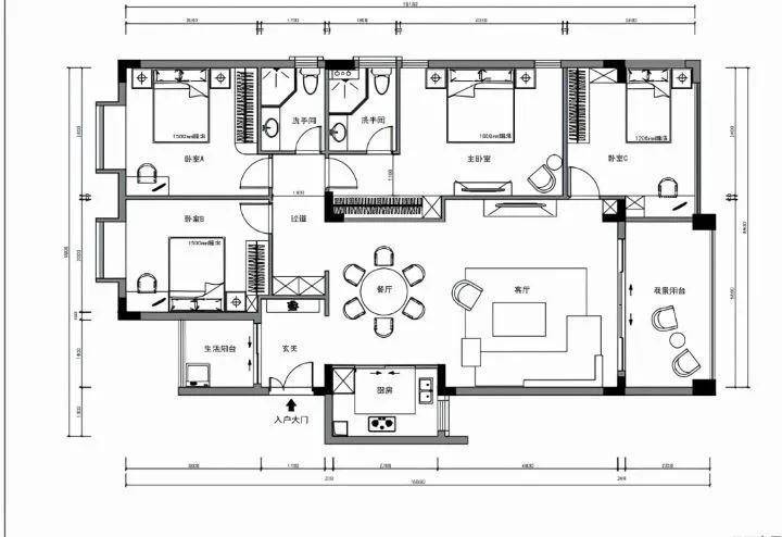 建筑面积约:138平方米,高使率约:91%, 三房轻松变四房