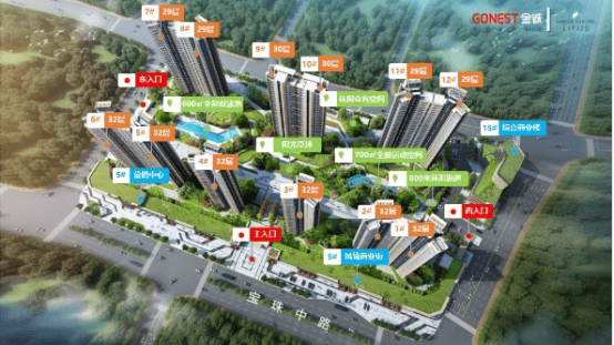 而小区打造全龄园林——中轴园林设计,以多维空间为打造出九大主题空间立体园林:①高端内嵌式奢华大门、②5大主题泛会所、③2大活动健身空间、④800米环形跑道、⑤600㎡度假式双泳池、⑥艺术中央廊架、⑦700㎡全龄活动空间、⑧林中养生道、⑨13680㎡综合商业楼。