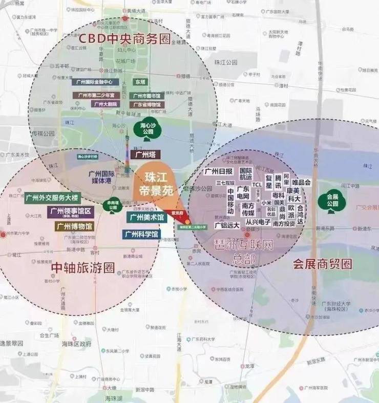 广州塔板块已成为最核心最被看好的区域,以广州塔为核心的新城市中轴线方圆一公里范围内,都是广州中心城区市政规划的重点区域,周边环绕三馆一场(美术馆、博物馆、科学馆、岭南广场、海心桥)、琶洲千亿级互联网CBD区(腾讯、阿里、复星、国美、小米等入驻)、珠江啤酒博物馆、广州报业文化广场、领事馆区、湿地公园等,形成独有的高端人文圈层。该板块资源稀缺,买少见少,地价一路飙升。