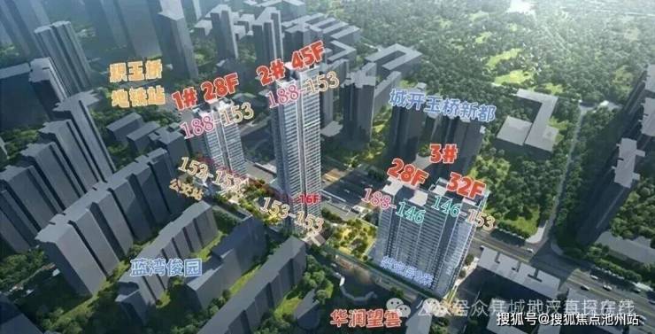 项目一共3栋楼,1号楼28F,2号楼45F,3号楼两个单元,一个28F,一个32F。项目户型为146/153/188㎡。