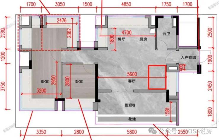 超大LDKB方厅:客餐厨阳台四大功能区打通。一键切换聚餐、party模式