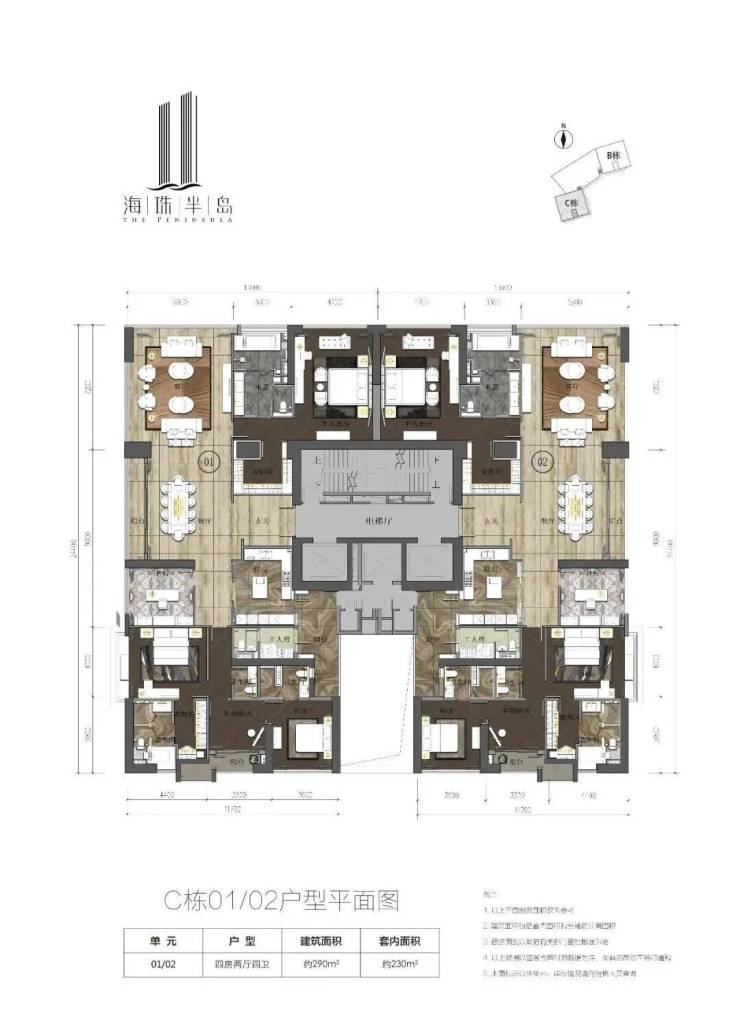 户型展示290平方米四房(四主套)两厅+工人房(也有独立卫生间)