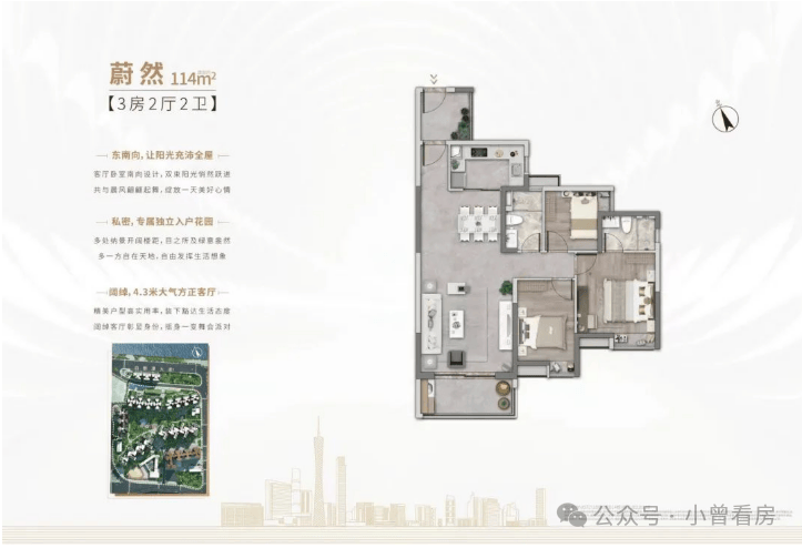 此次加推主要涵盖建面约80-143㎡二至五房,全南向户型,主力户型建面约109㎡全南名校主套三房、建面约122㎡天幕江景学府四房。离江50米的距离,无论是产品设计,还是景观视野,都堪称一流。