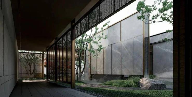 一进·东方府门,承载宾主、内外之礼;二进·山水隐园,续写东方美学画卷;三进·禅意雅境,拾趣岭南东方韵味会客厅,诠释东方礼序文化,体现东方威仪的门第风范。