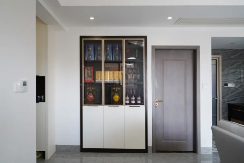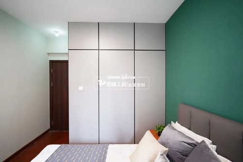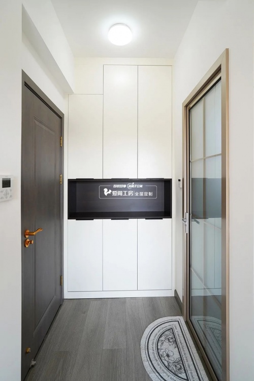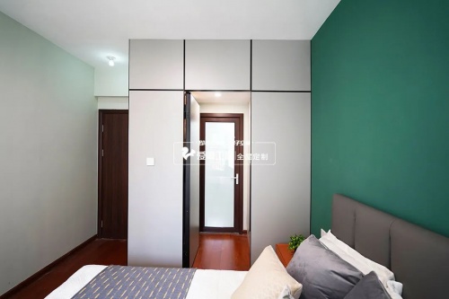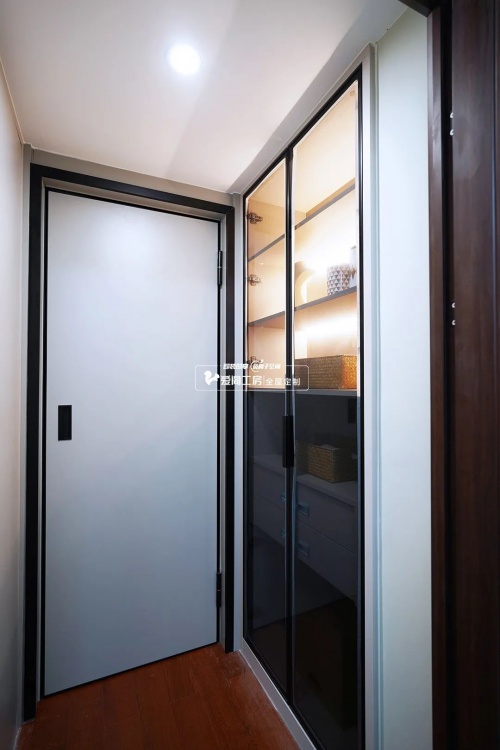 衣帽间以高标准为要求,力求到真正的隐形。这对于安装师傅的手艺的要求不言而喻。隐形门也由设计师帮忙挑选和搭配,无论是在设计图还是实地安装上有着十分的质感。这得益于品牌对于团队人员的严格规范与培训。值得一提的是,衣帽间空间狭小。这无疑增加了安装难度,但整体的效果呈现仍然有着极高的水准。