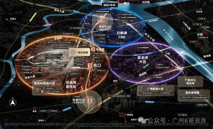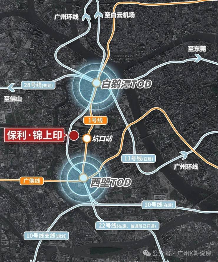 距1号线坑口站直线距离约仅约880米,步行 13-15 分钟可达,2站即达双TOD(西朗及芳村),快速通达海珠越秀,道路交通及公交路网完善,享30分钟城芯生活圈。