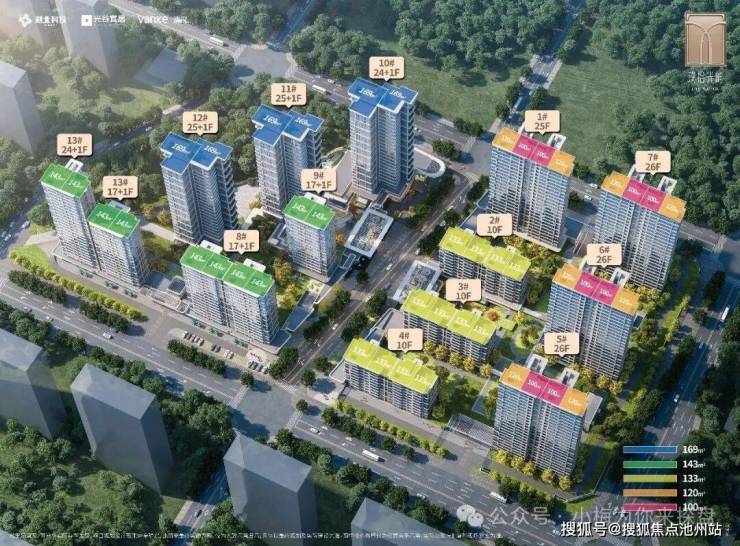 该项目住宅部分共计由13栋10-26层的洋房和小高层产品组合,分为C、D两个地块,总户数843户,总容积率2.1。其中C地块容积率2.27,共计6栋楼,共计323户;D地块容积率1.98,共计7栋楼,共计520户。都属于当下容积率较低的地块。南向立面为公建化外立面,大面积转角玻璃幕墙,颜值在线。车位配比1:1.25,共计1052个车位。
