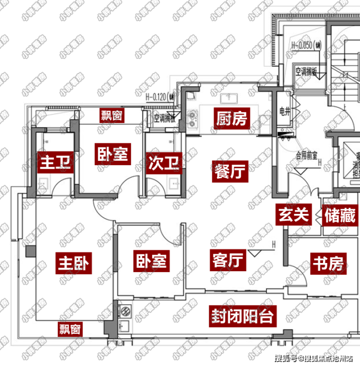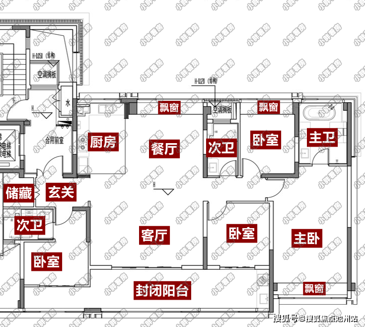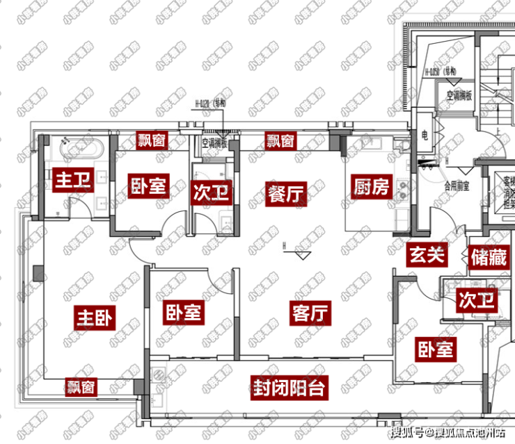 该户型赠送面积相对较少,仅有3个飘窗设计;