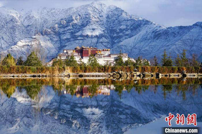 图为游客在拉萨南山公园与布达拉宫雪景合影。 江飞波 摄