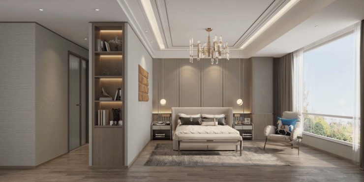 全明通透,全落地窗加平开窗的设计,保证通风与采光,优于传统的商业大平层项目无法正常开窗的设计;四开间朝南,南向面宽达18.3米,保证最佳的采光和视野;客厅开间5.9米,造就约40平米大方厅一体化设计,宽敞大气;