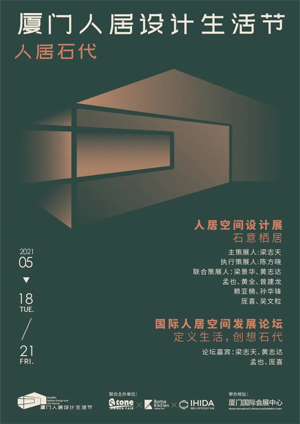 厦门人居设计生活节 · 国际人居空间发展论坛【定义生活·创想石代】,重磅邀请梁志天设计集团有限公司创始人梁志天先生、RWD黄志达设计创始人/董事长黄志达先生、孟也空间创意设计事务所设计总监孟也先生、厐喜设计顾问有限公司设计总监厐喜先生四位国内知名设计师,为我们带来精彩的设计主题演讲,一场场思想盛宴与你一同解锁设计与石材的未来趋势。