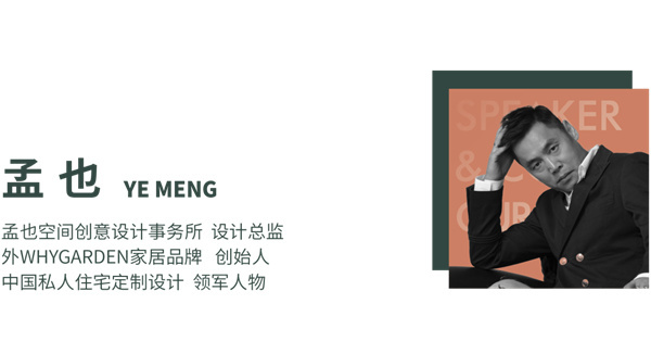 孟也先生,空间设计师,孟也空间创意设计事务所设计总监、外WHYGARDEN家居品牌创始人、中国私人住宅空间定制设计的领军人物。