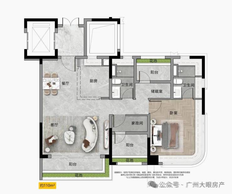 “宽幕视野” 南北通透双视野,主卧270°转角飘窗