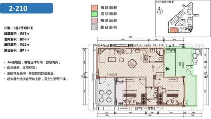 建面约70-75㎡两房