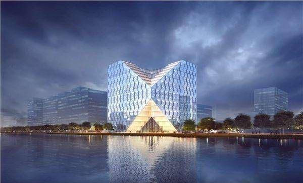 巨大的钻石状入口连接大堂,环绕布置咖啡吧、书吧、便利店和轻餐饮。