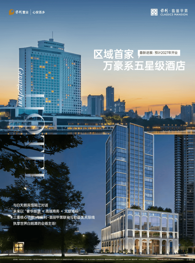 ✨保利置业建设区域首家万豪系五星级酒店,与传奇白天鹅宾馆隔江对望,与保利·翡丽甲第共塑最美天际线!