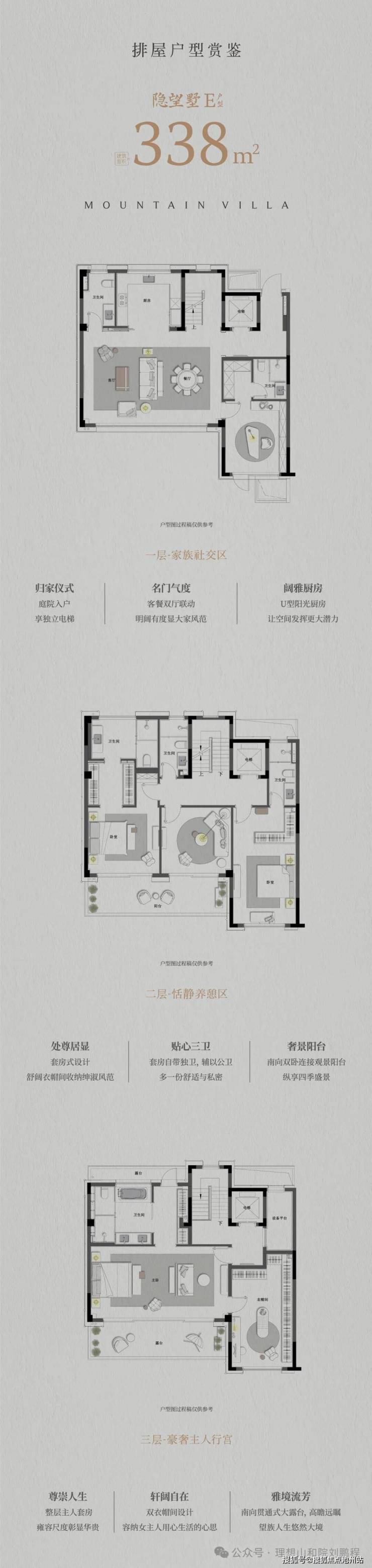 户型面积:排屋建面约338-358㎡、叠墅建面约215-297㎡