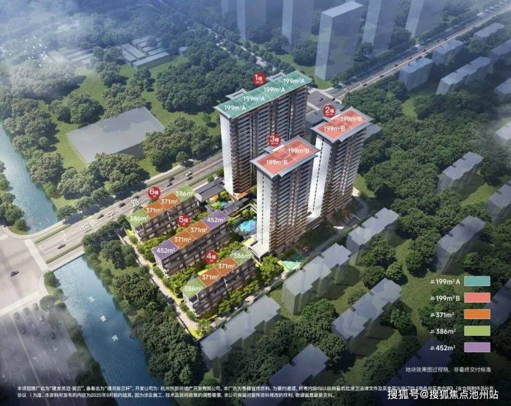 西面的排屋建面约371-452方,只有12席,实际得房率超240%(仅供参考,以实际具体房源为准)!建筑主楼抬高约1.5米,地下室层高约6.7米,1-2F层高约4.12米,3-4F层高约4米,采用退台设计,勾勒空中庭院,户户南北院……放眼杭州低密市场,实属罕见。