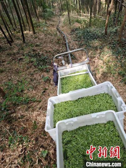 为了方便运输,他在茶山上建起一条条轨道,采摘下的新鲜茶叶可以通过轨道输送至山脚下,“相比之前的人工运输方式,这样既安全又方便。”