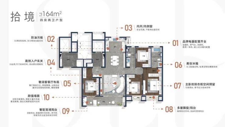 在尺度感上就做到了很高水准,舒适大四房,同时还实现了4开间朝南的格局。可以轻松应对二人世界、二胎家庭、三代同堂各个阶段的生活所需。