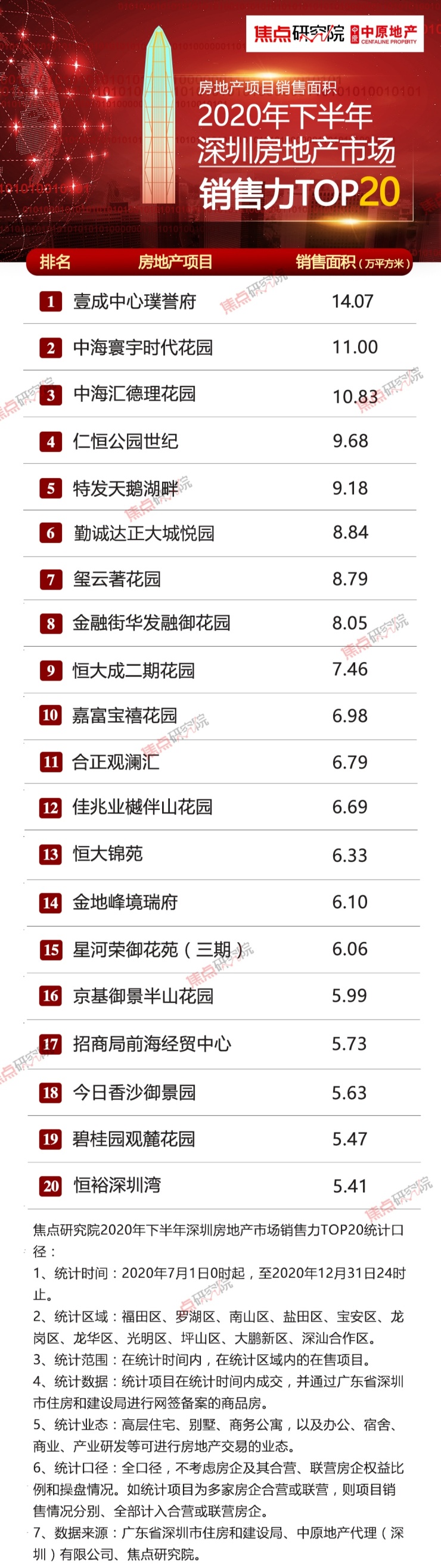 权威发布 | 2020年下半年深圳房地产市场销售力TOP20