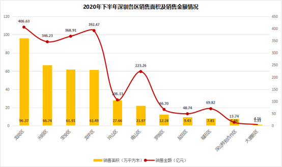 据焦点研究院统计,2020年下半年,龙岗、光明、宝安、龙华系成交主力,福田、南山则系成交单价较高区域。