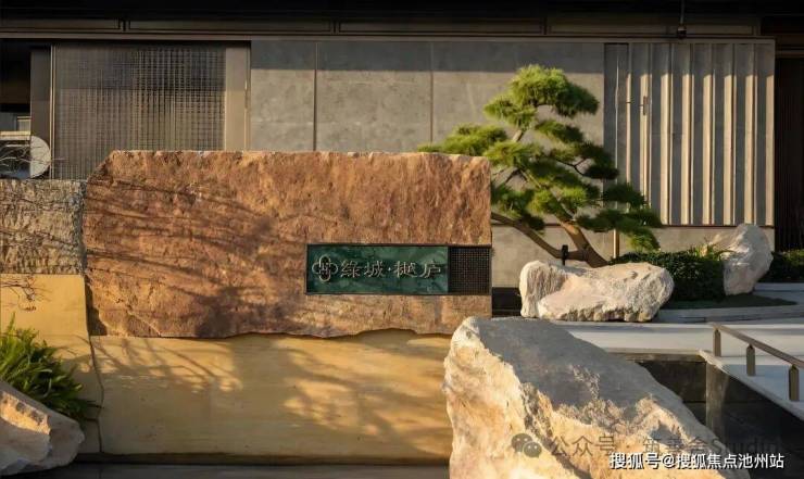 小区大门延续绿城“庐系”的高配置传统,入口处宏伟的大门尽显气派,整体风格深具宋韵雅致。主入口以简雅流线勾勒诗意画卷,水为渡,松相迎。昭示景墙隔绝尘嚣,将园景纳藏其中。景墙下,溪水潺潺,灵动水景与拙朴景石相映成趣,引水造景,藏风聚气。松影摇曳,光影流转,方寸之间,宁静深远,风雅闲适,谱写归家序曲。