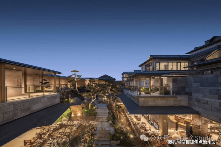 在园林景观设计上,深入挖掘苏州本土文化精髓,秉持“以水为脉、理水造园”的核心理念,精心构筑充满水乡韵味的景观序列。下沉庭院,一方隔绝尘嚣的静谧秘境,融汇苏州园林的雅致神韵,以收放自如的空间布局,构筑出步移景异的游园雅趣。虬枝松树尽显风骨,错落景石沉淀岁月,于静默中诉说时光故事。循径而下,绿意葱茏,光影斑驳,清泉潺潺,于自然怀抱中邂逅一份宁静悠然。