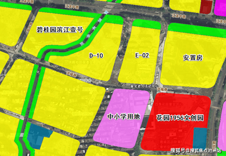 有意思的是,D-10与E-02的学区不同。目前初中的学区划分以洪殿北路为界(不排除未来重新划分调整的可能),东侧地块为二中滨江校区、蒲鞋市小学黎明校区,西侧地块为十四中、少年游泳学校。不排除未来在交付之时,统一为同一施教区的可能。