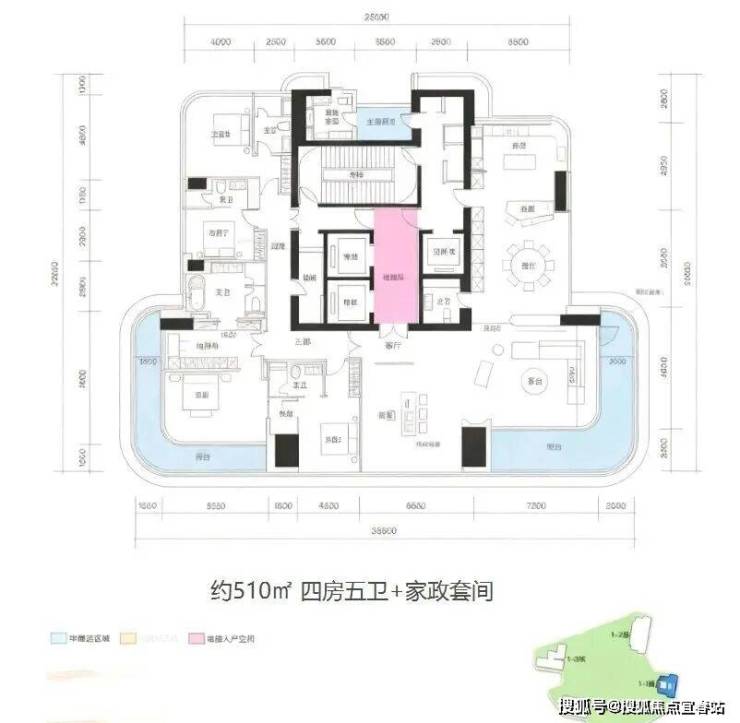 一层一户,纯粹顶豪:整层仅您一户,独享约510㎡的恢弘空间,私密性登峰造极。