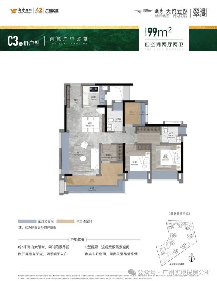 4、产品力突出,新规户型使用率超100%,空间利用率高,户型设计灵活,满足不同家庭需求,且开发商为越秀地产,物业由越秀物业提供,品质有保障。