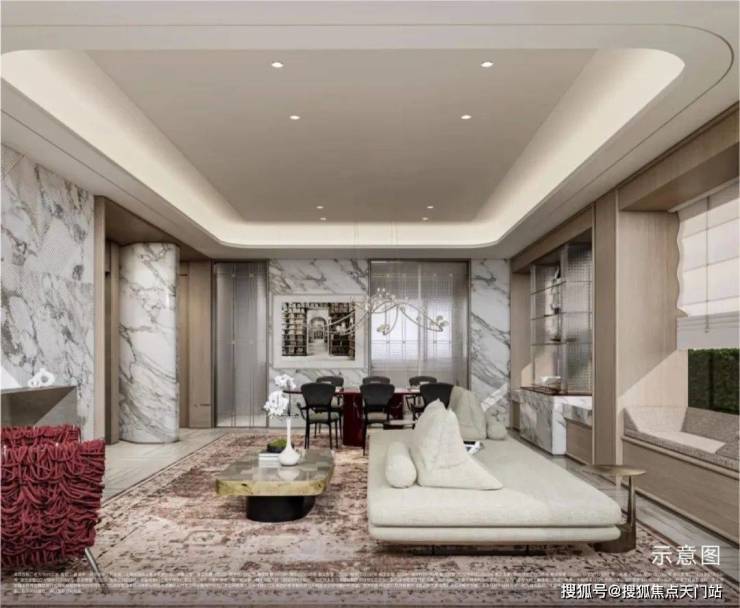项目的中叠四开间朝南,超大IMAX的采光面,妥妥市区豪宅大平层的尺度感。