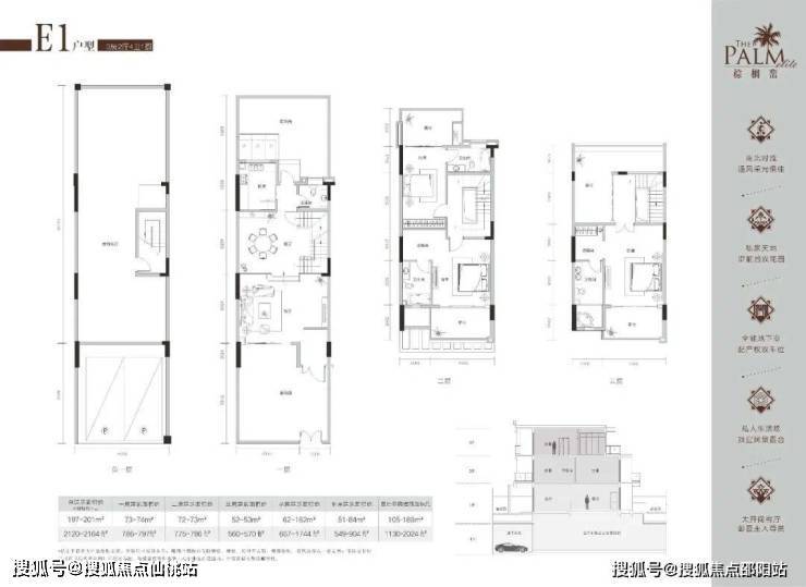 有建筑面积约230-460㎡的联排及双拼,部分产品拥有私家电梯,产品设计有前后花园、露台及带双车库产权地下室,舒适惬意的墅区生活。