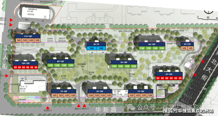 项目规划18栋,5到11层共8栋, 其他16至 17层,小高17层是2梯两户,
