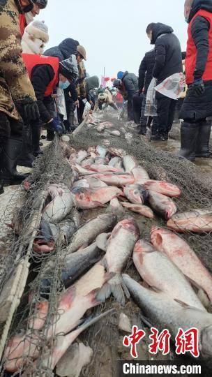 活动现场,迎风旗列列,震天鼓咚咚。伴着欢快的音乐节拍,身着达斡尔族民族服饰的打渔郎们载歌载舞,鱼把头祭湖醒网,打渔郎们豪气万丈,扛起渔具,开始冬捕第一网。随着大型机械绞盘哗哗转动,湖水泛花,千米巨网在冰下蹿动,一条条鲜活肥美的湖鱼随网摆尾而出。本次冬捕,头网捕捞了12万斤湖鱼,头鱼以88888元的价格竞拍成交。
