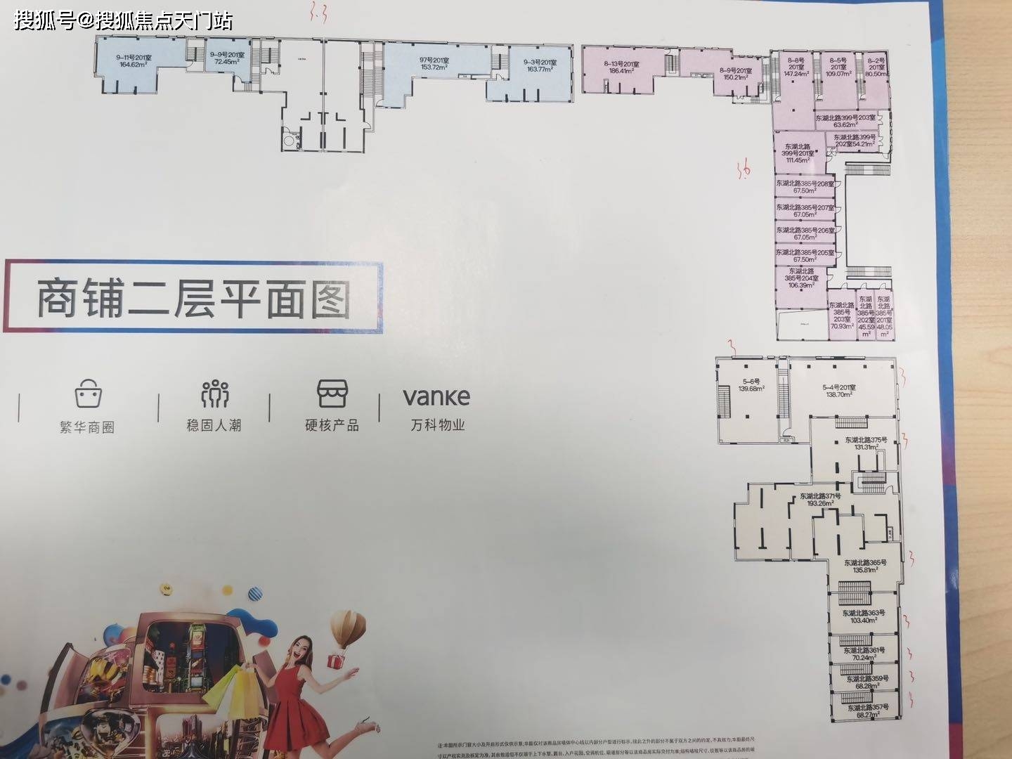 商铺一楼主力面积在30-40方,,二楼主力面积在200方左右,可以自由分割组合,能够满足不同面积段商铺的需求。