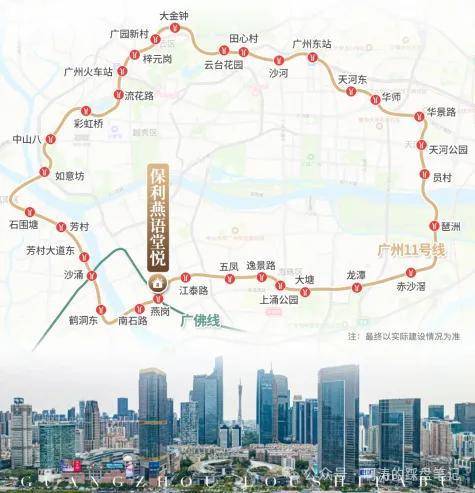 约50m燕岗站,广佛线、11号大环线(土建工程已完成98%,将于年内通车)双地铁上盖,4站达上涌、8站达琶洲,轻松链接全城。