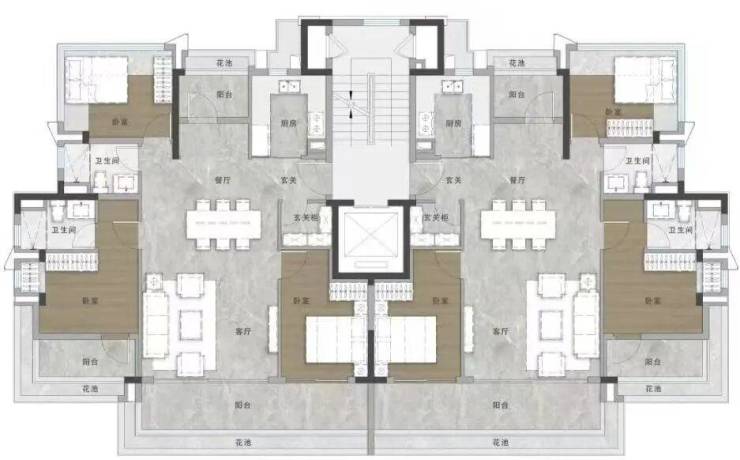 另一个则是户型本身独具魅力,没有选择传统格局,而是带来更新潮的“四叶草”户型2.0版本。