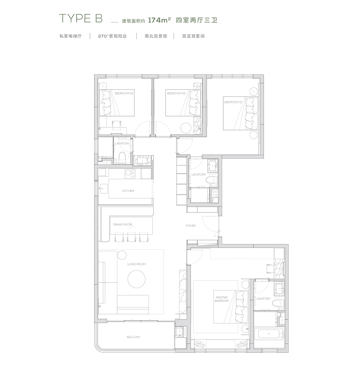 约37万㎡全龄社区,产品涵盖145-315㎡三至五房,私家电梯厅,专梯专户。