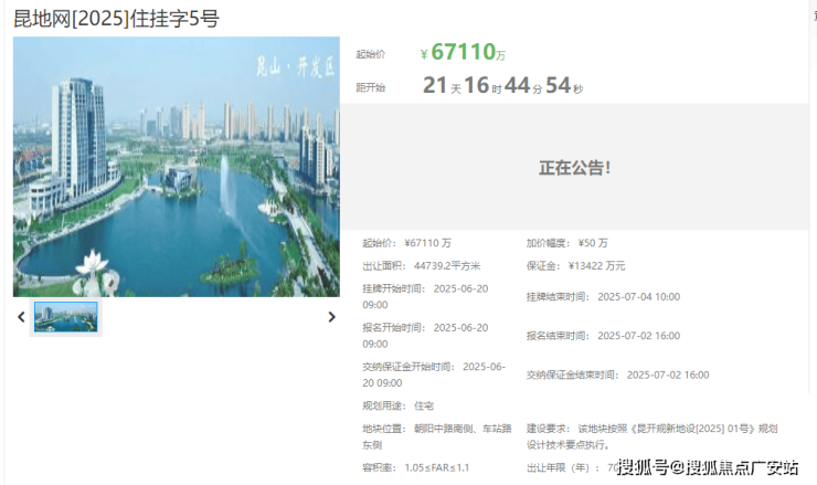 地块出让面积44739.2㎡,起始价67110万,容积率1.05-1.1,是整个片区内近些年容积率最低的一块宅地,起始楼面价13637元/㎡。